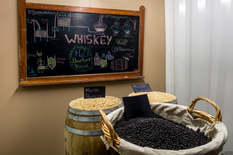 ウイスキーに使われる麦やピートの香りをここで実際に嗅ぐことができます!その他にも、ウイスキー製造で最も重要とされる樽の製造方法のビデオや、使用される道具を実際に見ることができます。
