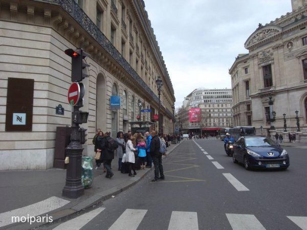 中央奥にギャラリーラファイエットが見えておりますが、ここはパリに滞在するほとんどの方が一度は通る場所。バスを利用しなかったとしても帰りの移動方法のことも考えて、通りかかった時に確認しておいてもよいと思います。